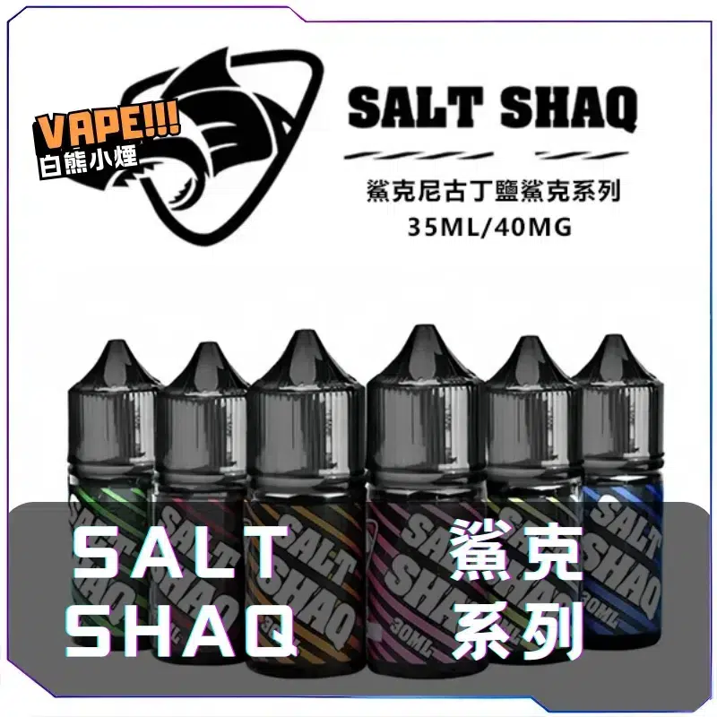 SALT SHAQ鯊克系列煙油,30mL,40mg尼古丁鹽,50/50 PG/VG,17種口味如可樂、哈密瓜、水蜜桃烏龍茶。高純度原料,約9000口,台灣電子煙油現貨