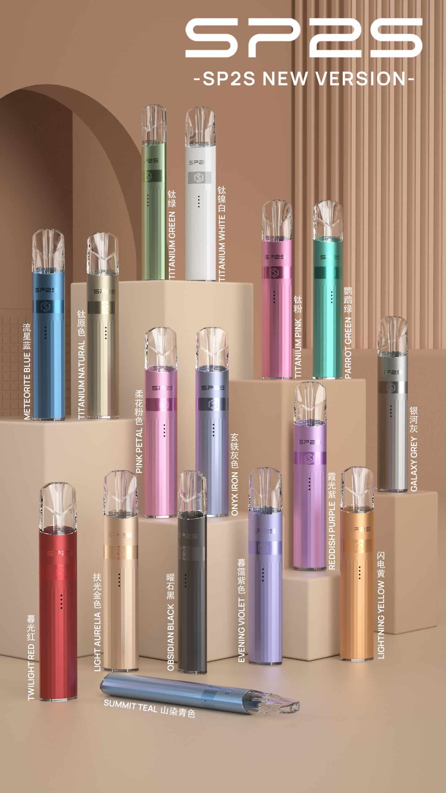 SP2S 傳奇版電子菸主機以 380mAh 電池、Type-C 快充、8W/9W 雙檔功率、LED 發光設計及通用一代煙彈打造,15色可選
